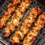 These Air Fryer Garlic Parmesan Chicken Skewers feature tender chicken breast pieces marinated in a flavorful garlic parmesan seasoning blend, then air fried to perfection for a juicy, charred finish. Quick and easy to prepare, they make a delicious and versatile meal perfect for busy weeknights. Serve them in wraps, over rice, or with creamy mashed potatoes for a satisfying dish.