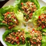 These Asian Chicken Lettuce Wraps are a quick, easy, and delicious meal inspired by P.F. Chang’s but with a homemade, healthier twist. Ground chicken is cooked with fresh veggies and coated in a savory, slightly sweet sauce combining soy, hoisin, and peanut butter flavors. Served in crisp lettuce leaves, they offer a light yet satisfying dish perfect for weeknight dinners or entertaining guests.