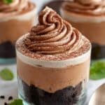 Indulge in these decadent Baileys Chocolate Cheesecake Cups, featuring a buttery Oreo cookie crust filled with a creamy, boozy chocolate cheesecake mousse made with Baileys Irish Cream. Topped with fluffy Baileys-infused whipped cream and dusted with cocoa powder, this no-bake dessert is perfect for any celebration or special treat.