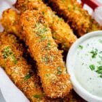 I haven’t had the best luck freezing baked pickle fries because the coating tends to get soggy upon reheating, so I recommend enjoying these fresh if you can. If freezing is a must, freeze them flat in a single layer, then reheat straight from frozen.