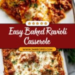 This easy and comforting Baked Ravioli recipe combines seasoned ground beef, marinara sauce, creamy half and half, and melty mozzarella cheese layered with refrigerated ravioli and baked to perfection. It’s a hearty, cheesy casserole perfect for a family dinner and can be made ahead or frozen for convenience.