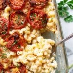 Pop the casserole in the oven for about 20 minutes. You want the tomatoes to soften, roast, and just start browning around the edges. If you want a little extra color, a quick blast under the broiler for a minute or two will do the trick, but keep a close eye to prevent burning. Don’t let it bake longer than 20 minutes, or your mac might dry out.