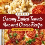 This Baked Tomato Mac and Cheese pairs wonderfully with a crisp green salad dressed with lemon vinaigrette to cut through the richness. Garlic bread or roasted vegetables like asparagus or green beans also make a lovely accompaniment.