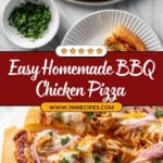 This Homemade BBQ Chicken Pizza recipe combines tangy barbecue sauce, tender pre-cooked chicken, and a delightful blend of mozzarella and smoked gouda cheeses on a crispy homemade or store-bought pizza crust. Finished with fresh red onions and a sprinkle of cilantro, this pizza offers a perfect balance of smoky, sweet, and fresh flavors for an irresistible meal.