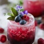 A refreshing and fruity Honey Berry Kombucha Smash featuring fresh blueberries, raspberries, honey, kombucha, and ginger beer, perfect for a light and effervescent summer beverage.