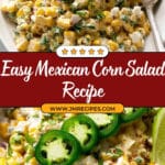 This Mexican Corn Salad is a vibrant and creamy side dish inspired by the popular Mexican street food Esquites. Made with golden-browned fresh or frozen corn kernels sautéed in butter with garlic, then tossed in a zesty lime, mayonnaise, and sour cream dressing, and finished with parmesan cheese, fresh herbs, and optional jalapeno and cotija cheese. Perfect served warm or at room temperature, this salad is a delicious addition to any Mexican or Southwestern meal.