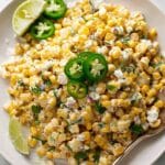 This Mexican Corn Salad is a vibrant and creamy side dish inspired by the popular Mexican street food Esquites. Made with golden-browned fresh or frozen corn kernels sautéed in butter with garlic, then tossed in a zesty lime, mayonnaise, and sour cream dressing, and finished with parmesan cheese, fresh herbs, and optional jalapeno and cotija cheese. Perfect served warm or at room temperature, this salad is a delicious addition to any Mexican or Southwestern meal.