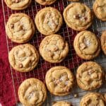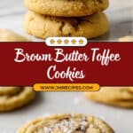 Delight in these soft and chewy Brown Butter Toffee Cookies, bursting with rich toffee pieces and enhanced by the nutty flavor of browned butter. Finished with a sprinkle of sea salt, these cookies offer the perfect balance of sweet and salty in every bite. This recipe also guides you through the process of browning butter, making it easy even for beginners.