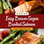 A quick and flavorful Brown Sugar Broiled Salmon recipe featuring a caramelized brown sugar glaze over tender salmon fillets, complemented by roasted asparagus, broccolini, and cherry tomatoes. Perfect for an easy, delicious weeknight dinner with minimal prep and a healthy touch.