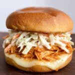 Experience a mouthwatering twist on the classic burger with this Buffalo Chicken and Blue Cheese Slaw Burger recipe. Juicy chicken breasts are slow-cooked in spicy buffalo sauce to tender perfection, topped with melted mozzarella cheese and a crunchy, tangy blue cheese slaw, all nestled in a soft potato bun. This make-ahead, flavorful meal combines bold buffalo spice with creamy blue cheese for an irresistible combination that’s perfect for weeknight dinners.
