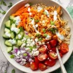 These Buffalo Chicken Rice Bowls are a delicious and satisfying meal combining tender shredded buffalo chicken with fluffy rice, fresh vegetables, and a creamy homemade high-protein ranch dressing. Perfectly balanced for those looking for a macro-friendly, gluten-free option, these bowls can be effortlessly prepared using a slow cooker or Instant Pot, making them an ideal choice for easy weeknight dinners or meal prep.