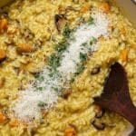 Leftover risotto stores well in an airtight container in the fridge for 2-3 days. I usually let it cool to room temperature first and then pop it in. Keep in mind it will thicken in the fridge, so it’s a good idea to add a splash of broth or water before reheating.