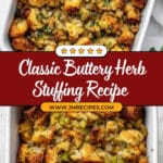 This Buttery Herb Stuffing Recipe is honestly one of those dishes that makes holidays and family dinners feel even more special. It’s comforting, flavorful, and pretty forgiving once you know the basics. I can’t recommend it enough if you want a stuffing that feels homemade, fresh, and bursting with buttery herb goodness every single time. I hope you enjoy making and sharing it as much as my family and I do!
