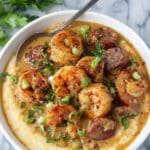 - Serve: Spoon a couple of ladle-fulls of the creamy grits into bowls. Top with the shrimp and spicy sausage sauce. Garnish with fresh chopped green onions and parsley if desired. Serve immediately and enjoy the vibrant flavors.