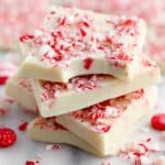 This festive Candy Cane Fudge is an easy-to-make, creamy white chocolate peppermint treat made with only three ingredients. Featuring a smooth white chocolate and sweetened condensed milk base with crunchy crushed candy canes mixed in and sprinkled on top, this fudge is perfect for holiday gifting or indulgent snacking.