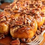 Delight in these Shortcut Caramel Pecan Cinnamon Rolls, a quick and indulgent twist on classic cinnamon rolls. Using refrigerated cinnamon roll dough, this recipe features a rich, homemade caramel sauce with pecans baked underneath the rolls, creating a gooey, nutty bottom layer that pairs perfectly with the sweet cinnamon rolls on top. Finished with a drizzle of icing, these rolls are perfect for an easy yet impressive breakfast or dessert.