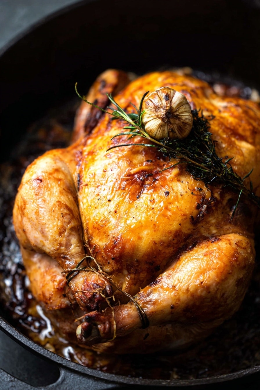 This Cast Iron Roast Chicken recipe delivers a juicy, flavorful whole chicken with perfectly crispy skin, enhanced with fresh herbs and garlic. Cooked in a cast iron skillet to retain moisture and develop a beautiful crust, the pan drippings are transformed into a rich white wine and chicken stock gravy for a restaurant-quality meal that’s simple to prepare and family-approved.