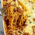 • Spaghetti: Use regular spaghetti and cook it just until al dente so it doesn’t get mushy in the bake.