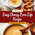 This Cheesy Beer Dip is a creamy, flavorful appetizer perfect for game days or casual gatherings. Combining sharp cheddar and smoked gouda cheese with beer, Dijon mustard, and Worcestershire sauce, it delivers a rich, savory taste with a subtle smoky finish. The smooth and cheesy dip is quick and easy to prepare on the stovetop, making it a crowd-pleaser that pairs wonderfully with pretzels, crackers, or fresh veggies.