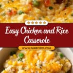 This Easy Chicken and Rice Casserole is a comforting and simple weeknight meal featuring tender chicken, creamy condensed soup, cooked rice, and mixed vegetables, all baked together and topped with melted cheddar cheese for a flavorful, hearty dinner.