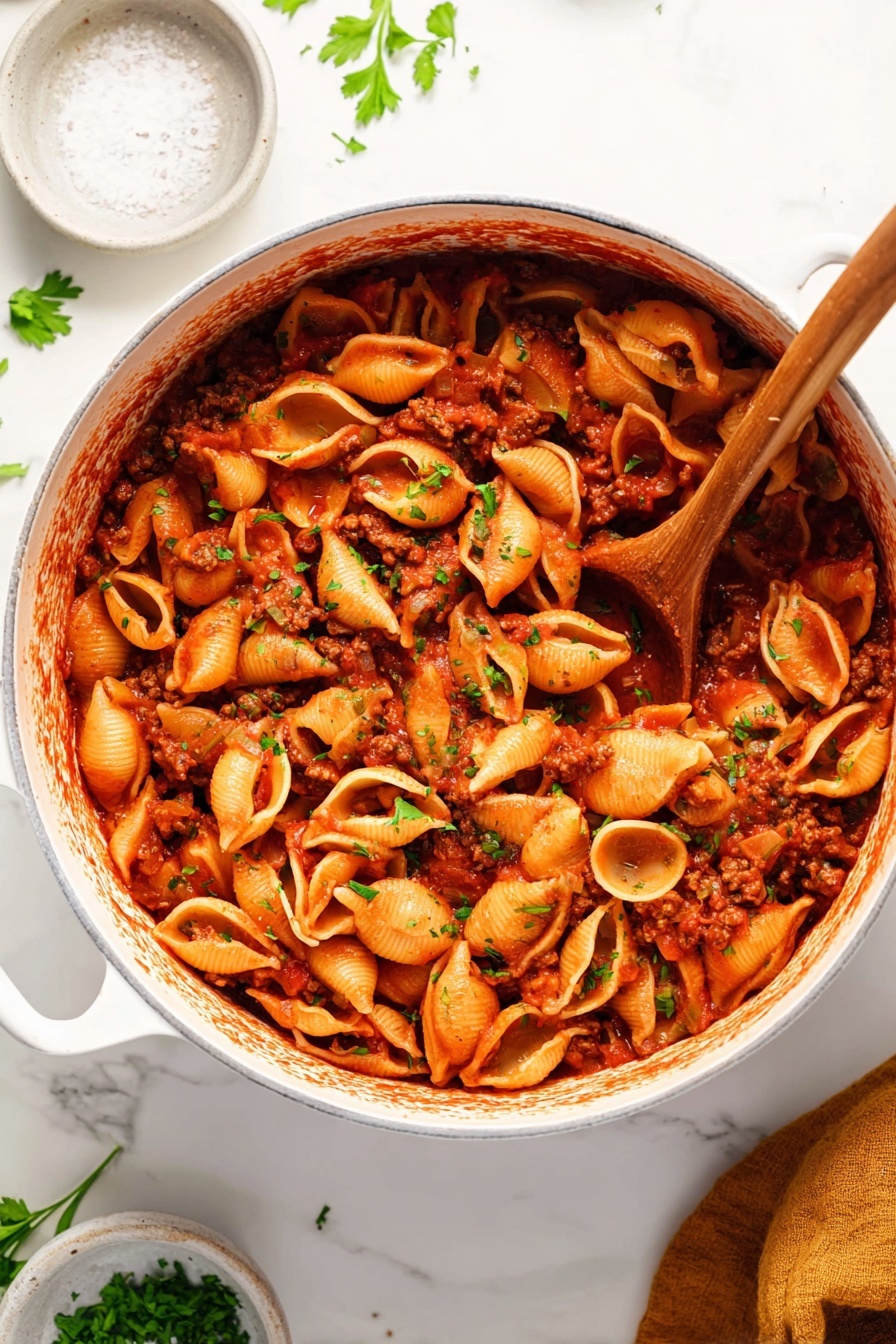 - Use shells or small pasta shapes that cook evenly in liquid.