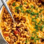 Chili Mac and Cheese is a hearty and comforting one-pot meal that combines tender elbow pasta with seasoned extra lean ground beef, black beans, kidney beans, diced tomatoes, and a perfect blend of spices. Topped with melted cheddar cheese and fresh parsley, this dish is a flavorful and satisfying dinner option that comes together in about 30 minutes, perfect for busy weeknights or feeding a crowd.