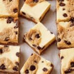 Delight in these decadent Chocolate Chip Cookie Cheesecake Bars that combine chewy chocolate chip cookie dough with a creamy, rich vanilla cheesecake layer. This crowd-pleasing dessert is perfect for beginners, baking in a single pan to create 24 irresistible bars with gooey chocolate chips and a touch of flaky sea salt on top.
