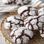 For special occasions, I’ve stacked Chocolate Crinkle Cookies in mason jars tied with twine as homemade gifts — they always get compliments and are such a fun way to share. You can also arrange them on a pretty platter with festive edible flowers or sprigs of fresh mint to brighten up the display.