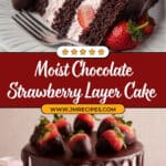 This decadent Chocolate Strawberry Cake features two layers of rich, moist chocolate cake infused with cocoa and coffee for depth of flavor, all frosted with a luscious strawberry frosting and filled with fresh sliced strawberries. Perfect for special occasions or impressing guests, this cake combines the lusciousness of chocolate with the bright freshness of strawberries in a beautiful and delicious dessert.