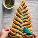 These Christmas Tree Spinach Dip Breadsticks are a festive and delicious holiday appetizer, featuring layers of creamy spinach dip sandwiched between pizza dough and twisted into a decorative tree shape. Topped with garlic butter and baked to a golden brown, they’re perfect for parties and gatherings during the holiday season.