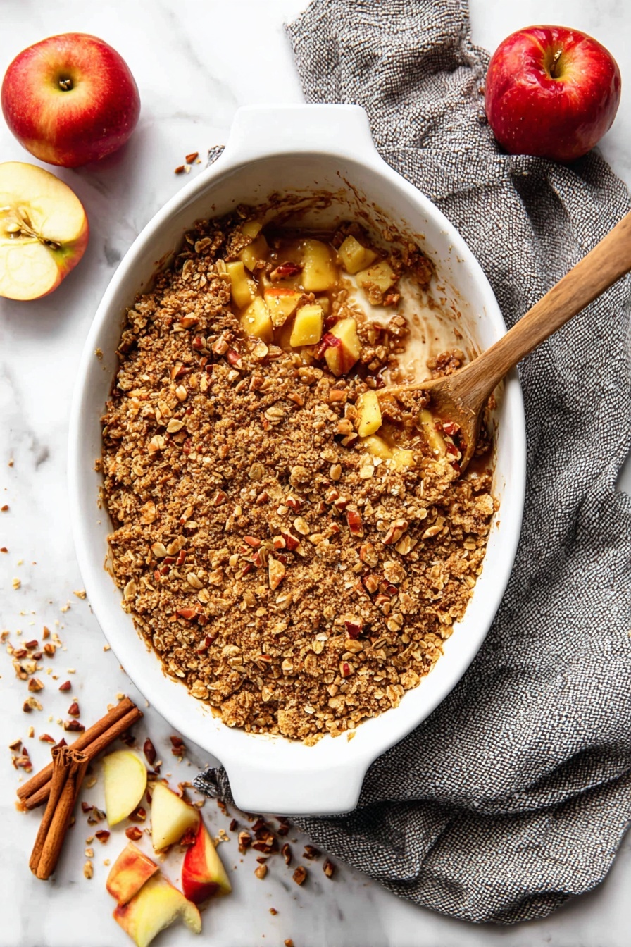 For a special brunch, I like to bake the oatmeal in individual ramekins—everyone feels like they’ve got their own personal treat. You can also dollop cinnamon-spiced whipped cream for an indulgent touch. Try adding a decorative apple slice or a pecan on top as a pretty garnish when serving guests.