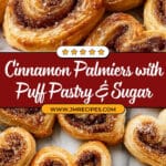 Sweet and crunchy cinnamon palmiers made with storebought puff pastry, turbinado sugar, brown sugar, and cinnamon. These easy-to-make cookies are caramelized to golden perfection, offering a spiced, buttery treat perfect for any occasion.