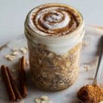 These creamy Cinnamon Roll Overnight Oats are a quick and easy make-ahead breakfast that captures the comforting flavors of warm cinnamon, molasses, and caramel. Made with old-fashioned oats, chia seeds, ground flaxseed, and plant-based yogurt, this dairy-free and vegan-friendly dish is soaked overnight for a perfect creamy texture. Topped with a healthy icing made from coconut yogurt, lemon juice, maple syrup, and oat milk, it’s a nutritious and delicious start to your day.