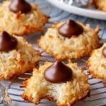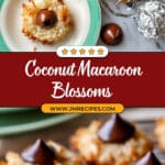 Delight in these Coconut Macaroon Blossoms, a sweet and chewy cookie that perfectly blends the tropical flavor of shredded coconut with rich, melty Hershey Kisses nestled on top. Naturally gluten-free and quick to make, these festive cookies are an irresistible treat for holidays or any occasion.