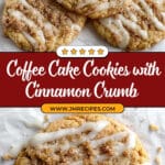 Delight in these Coffee Cake Cookies, featuring a soft cinnamon-spiced base topped with a rich brown sugar crumb and finished with a sweet cinnamon glaze for the perfect balance of chewy and crunchy textures. Ideal for any time you crave a comforting, coffee cake-inspired treat in cookie form.