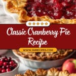 This Cranberry Pie features a buttery, flaky pie crust filled with a juicy, flavorful cranberry mixture enhanced by the bright zest of orange and warm spices like cinnamon and ginger. Perfectly sweetened and thickened to create a delightful holiday dessert.