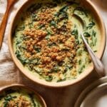 This rich and creamy creamed spinach recipe combines vibrant fresh spinach with smooth cream cheese, fontina, and heavy cream for the ultimate indulgent side dish. Toasted panko breadcrumbs with a hint of lemon zest add a delightful crunchy topping, making it perfect for dinner parties or comforting weeknight meals.