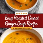A flavorful and creamy Carrot Ginger Soup made with just five main ingredients, featuring roasted carrots and fresh ginger for a comforting and healthy meal that’s quick and easy to prepare.