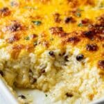 This delicious Chicken and Rice Casserole is a creamy, cheesy comfort food featuring tender rotisserie chicken, a blend of white and wild rice, and a rich combination of cream cheese, butter, garlic, and Italian seasoning. Baked to perfection with melted Colby Jack cheese on top and garnished with fresh parsley, this casserole is perfect for a hearty family dinner.