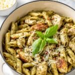 This creamy Chicken Pesto Pasta recipe combines tender, seasoned chicken with al dente penne pasta, sun-dried tomatoes, and rich basil pesto in a luscious heavy cream and parmesan sauce. Ready in just 20 minutes, it’s perfect for a comforting weeknight dinner or a special date night meal with a delicious Italian flair.