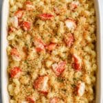 This Extra Creamy Lobster Mac and Cheese combines tender lobster meat with a rich, cheesy sauce made from sharp cheddar, Gruyere, and Parmesan cheeses. The creamy pasta bake is topped with a crunchy, buttery breadcrumb mixture and baked until bubbly and golden brown, creating an indulgent and flavorful comfort food perfect for special occasions or a decadent weeknight dinner.