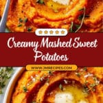 Creamy, buttery, and lightly sweet mashed sweet potatoes baked to tender perfection and combined with pure maple syrup, butter, and milk for a comforting side dish that’s perfect for any meal.