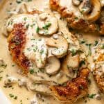 This Chicken with Creamy Mushroom Sauce recipe features tender, pan-seared chicken breasts smothered in a rich, flavorful sauce made from sautéed mushrooms, garlic, white wine, chicken stock, heavy cream, and freshly grated Parmesan. Enhanced with a light flour crust on the chicken for extra crispness, it’s a quick yet elegant dish perfect for a comforting weeknight meal or entertaining guests.