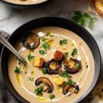 - Serve: Ladle the soup into bowls. Garnish with a drizzle of extra virgin olive oil or cream, sprinkle with croutons and chopped parsley (or chervil/thyme). Serve with crusty bread for dunking and enjoy.