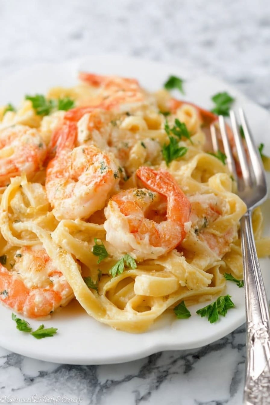 - This Shrimp Fettuccine Alfredo is a comforting and indulgent dish perfect for seafood lovers craving creamy pasta meals.