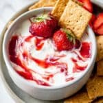 - Serve and Enjoy: Serve the cheesecake dip immediately with fresh strawberries and optional graham crackers for dipping.