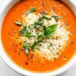 This Simple Creamy Tomato Basil Soup with Parmesan is a rich and comforting dish perfect for any season. Made with buttery sautéed onions and garlic, tangy San Marzano tomatoes, fresh basil, and creamy Parmesan cheese, this soup offers a luscious texture and vibrant flavor. It’s easy to prepare in one pot and finished with heavy cream for extra silkiness, making it an ideal meal for cozy family dinners or a satisfying starter. Serve it with crusty bread or grilled cheese sandwiches for a complete and comforting meal.