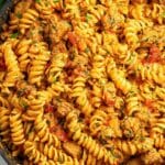 - Combine Pasta and Sauce: Add the cooked rotini pasta back into the skillet with the sauce and chicken. Stir everything together thoroughly so the pasta is well coated with the creamy tomato chicken sauce.