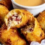 Reuben Egg Rolls are a delicious twist on the classic Reuben sandwich, wrapped in crispy egg roll wrappers filled with a creamy mix of corned beef, sauerkraut, Swiss cheese, and Thousand Island dressing. These savory treats are perfect as appetizers or snacks and come with a side of Thousand Island dressing for dipping.