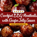 These Crockpot BBQ Meatballs are a delicious and effortless appetizer or main dish made with frozen meatballs simmered in a sweet and tangy sauce of grape jelly and BBQ sauce. Perfect for parties or easy weeknight meals, they require just three ingredients and minimal prep time.